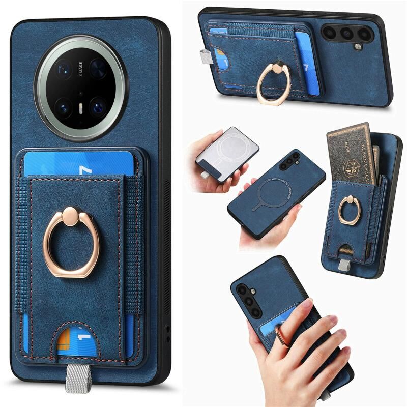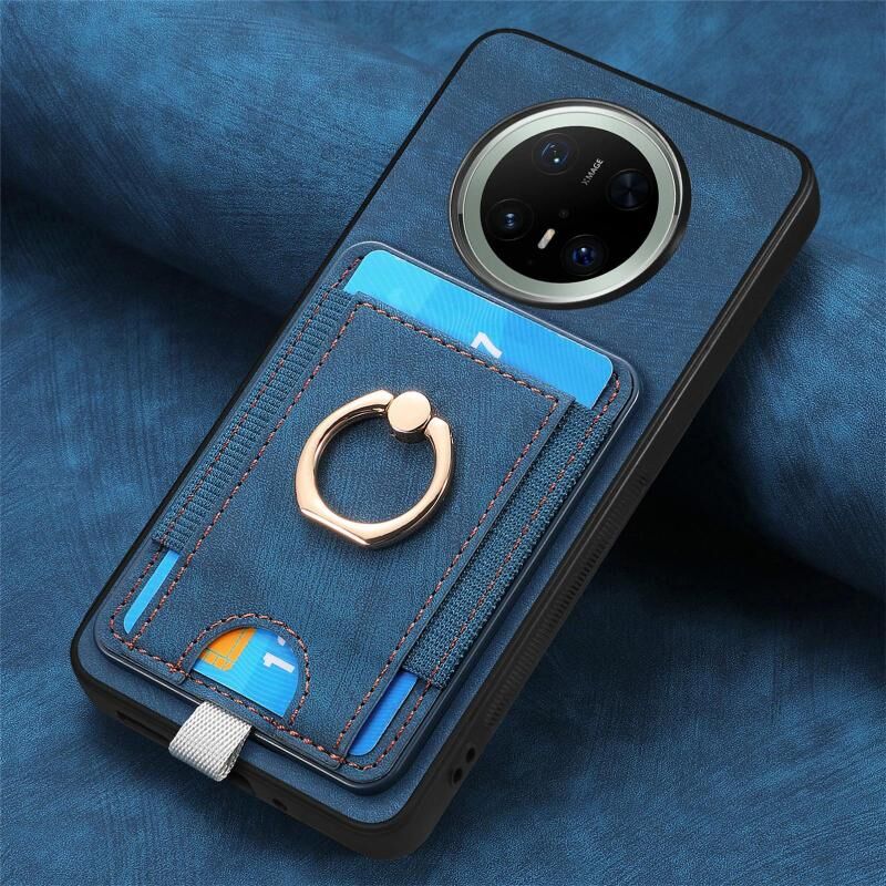 Θήκη τηλεφώνου Huawei Mate 70 Pro+ Retro Διαιρούμενη Μαγνητική Κάρτα από Δέρμα (Μπλε)
