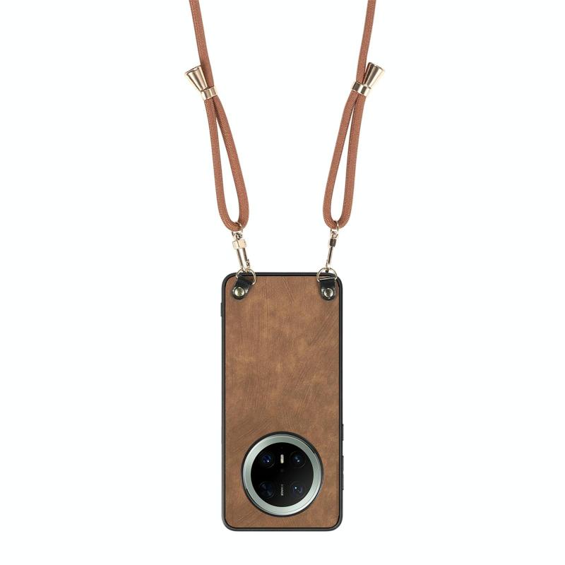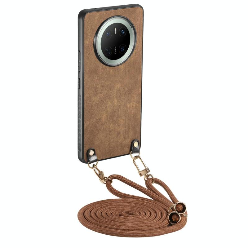 Θήκη κινητού Huawei Mate 70 Pro+ από δέρμα vintage και πολυανθρακικό (PC) με λουρί crossbody (Μπλε)