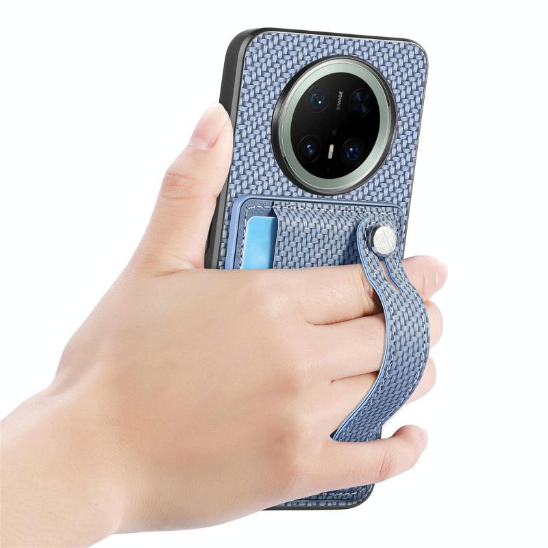 For Huawei Mate 70 Pro+ Wristband Kickstand Card Wallet Back Cover Phone Case with Tool Knife(Blue)