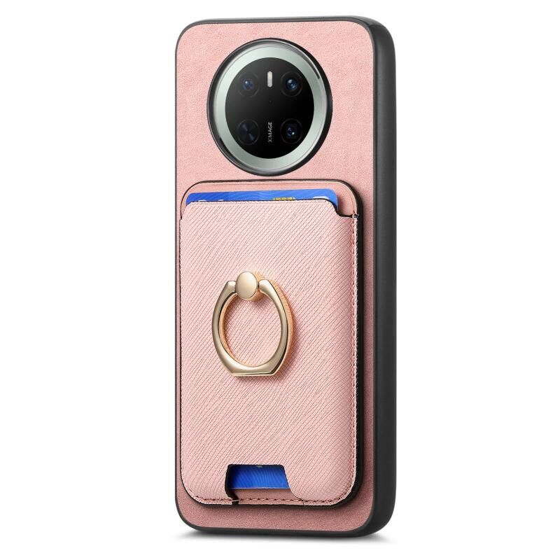 Θήκη τηλεφώνου Huawei Mate 70 Retro Cross Leather Ring Vertical Insert Card Bag MagSafe (Κίτρινο)