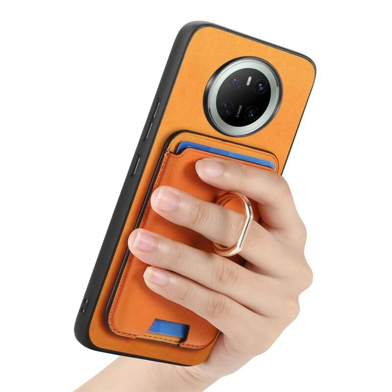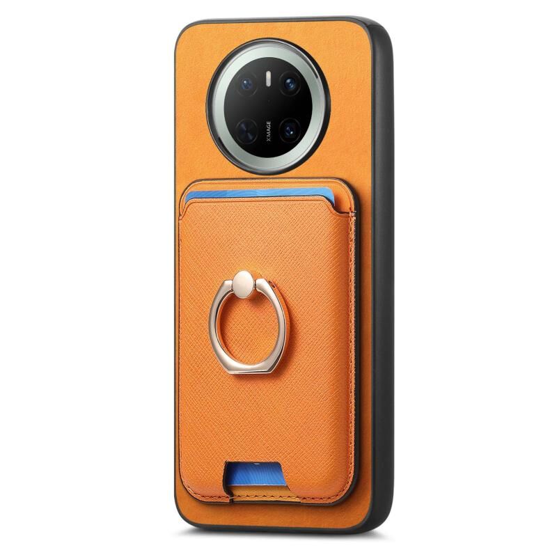 Θήκη τηλεφώνου Huawei Mate 70 Retro Cross Leather Ring Vertical Insert Card Bag MagSafe (Κίτρινο)