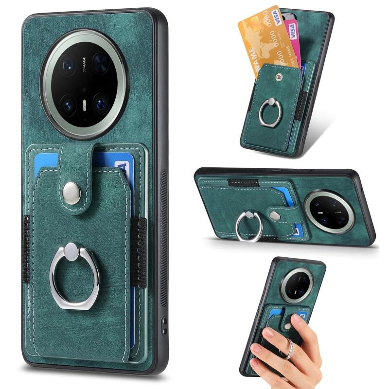 Θήκη τηλεφώνου Huawei Mate 70 με υφή retro, κάρτα δακτυλιδιού και θήκη πορτοφολιού (πράσινο)