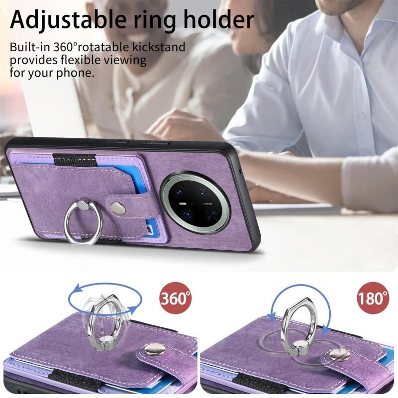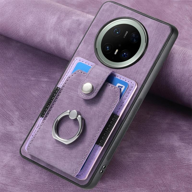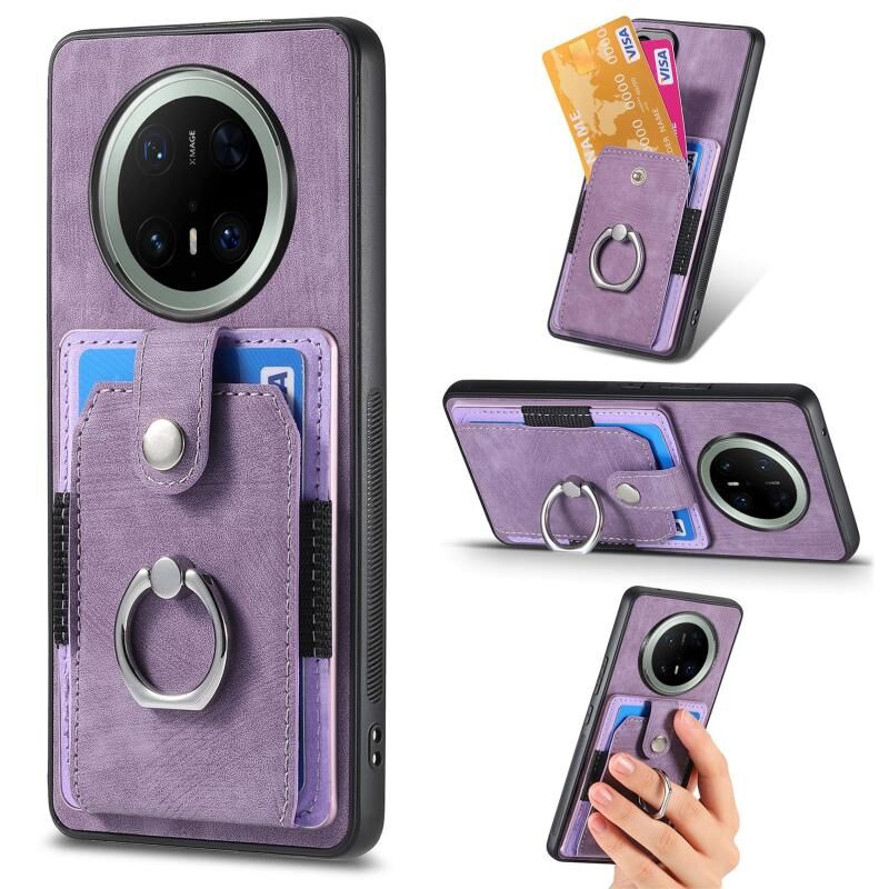 Θήκη τηλεφώνου Huawei Mate 70 με υφή retro, κάρτα δακτυλιδιού και θήκη πορτοφολιού (Μωβ)