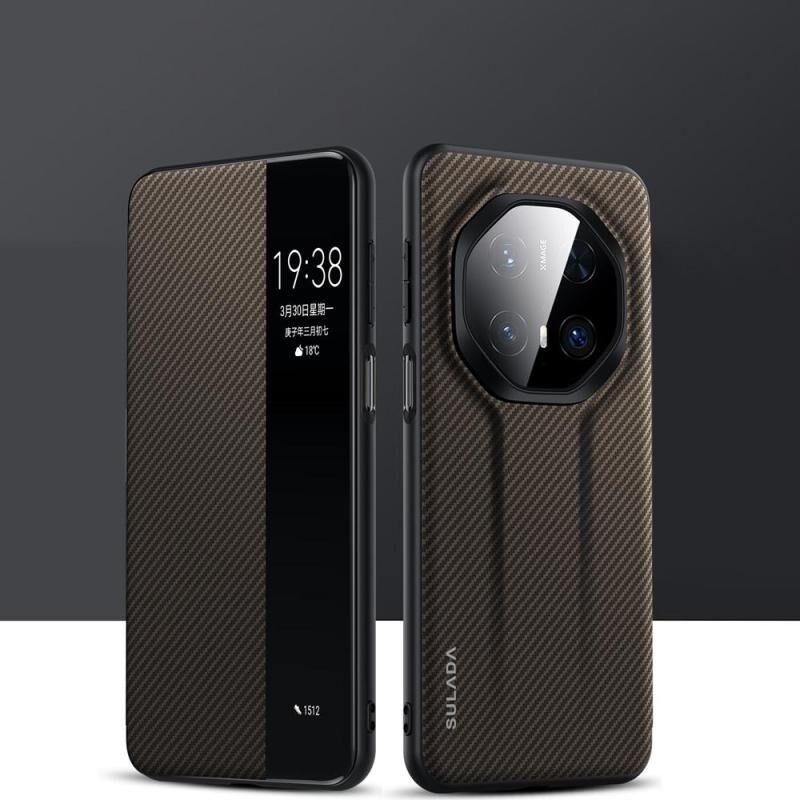 Θήκη τηλεφώνου από δέρμα με έξυπνο παράθυρο, υφή Kevlar 600D SULADA για Huawei Mate 70 RS Ultimate (Μαύρο) (SULADA)