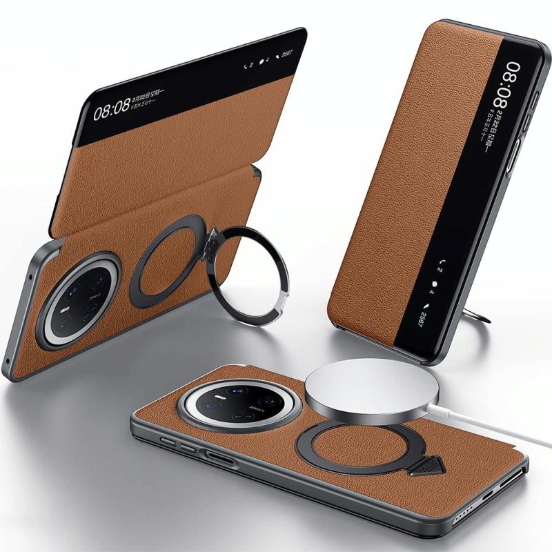 For Huawei Mate 70 SULADA Smart View Window MagSafe Magnetic Holder Leather Phone Case(Brown) (SULADA)