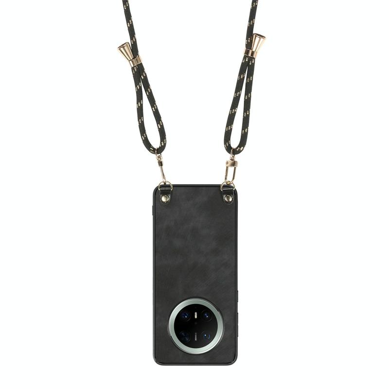 Θήκη κινητού Huawei Mate 70 από δέρμα vintage και πολυανθρακικό υλικό με λουρί για τον ώμο (Μπλε)