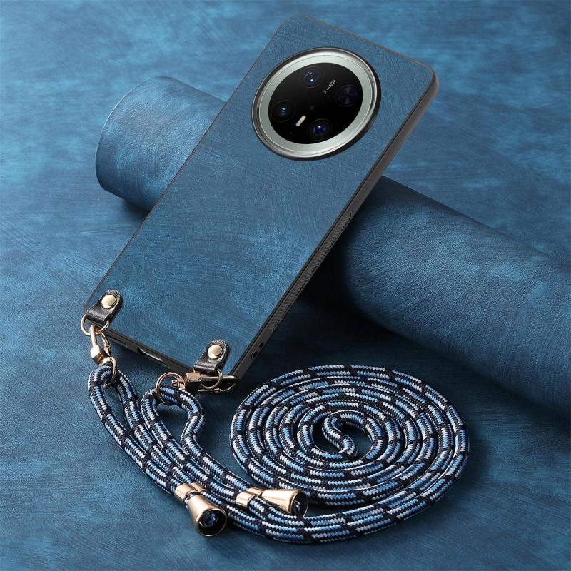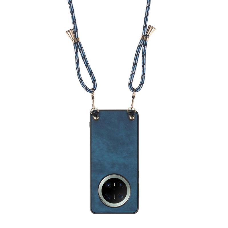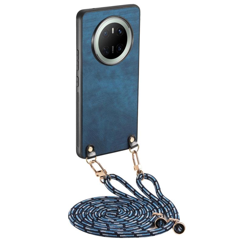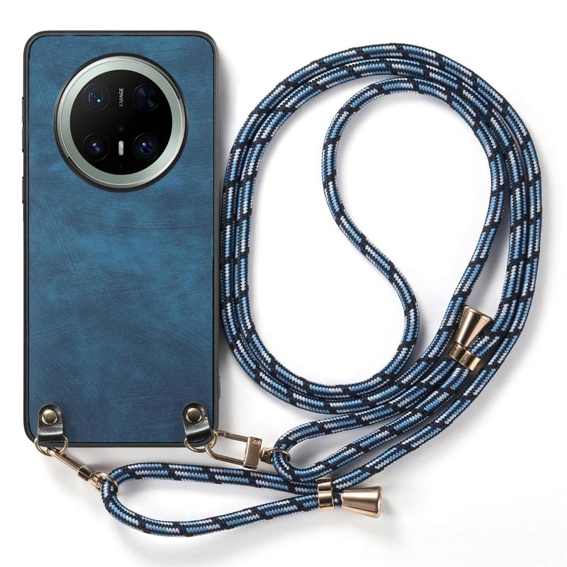 Θήκη κινητού Huawei Mate 70 από δέρμα vintage και πολυανθρακικό υλικό με λουρί για τον ώμο (Μπλε)