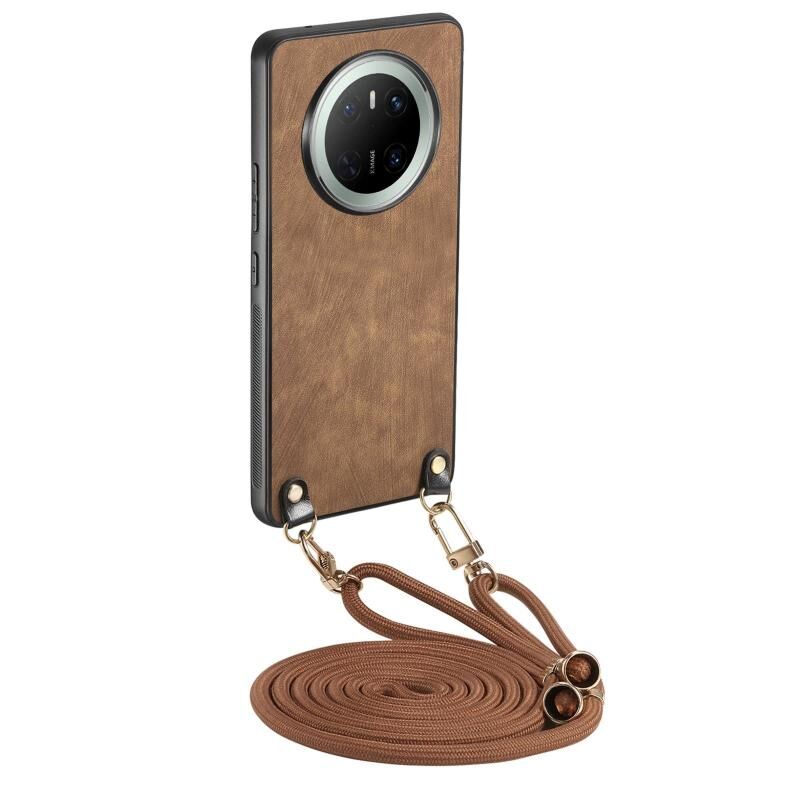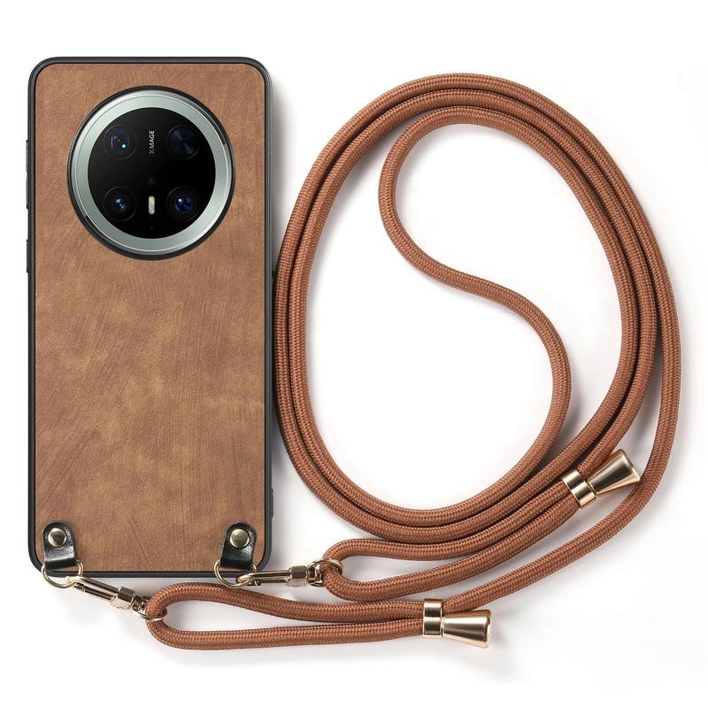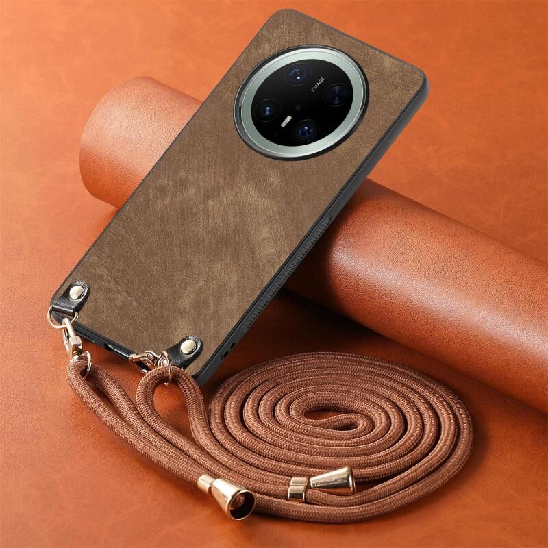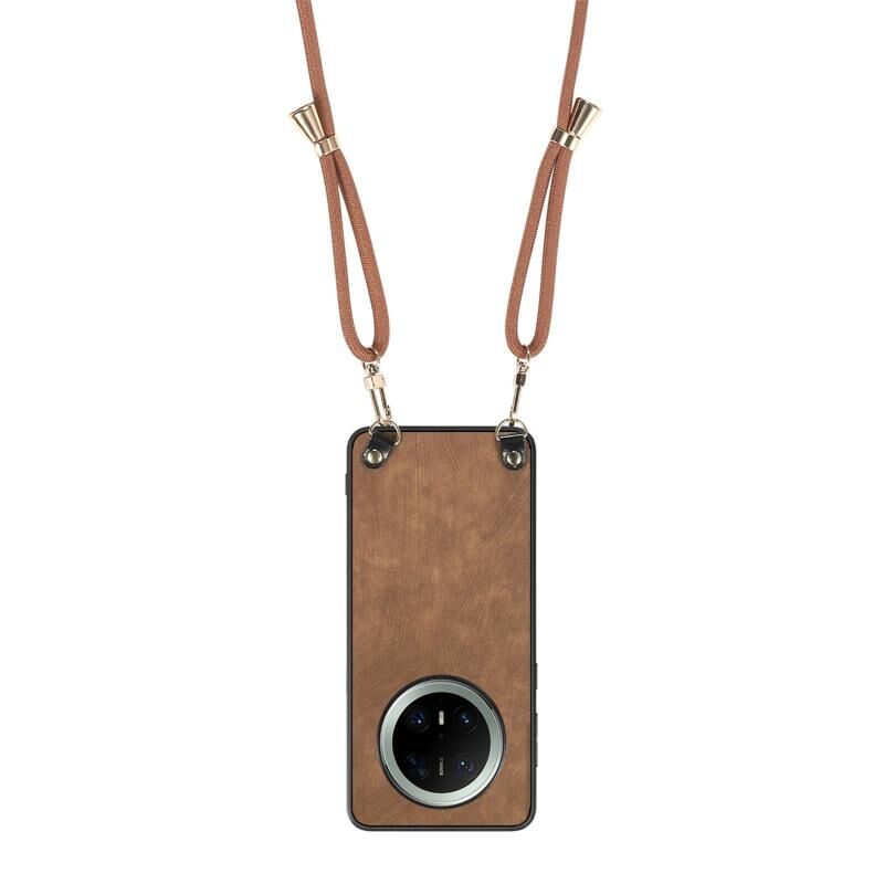 Θήκη κινητού Huawei Mate 70 από δέρμα vintage και πολυανθρακικό υλικό με λουρί για τον ώμο (Μπλε)