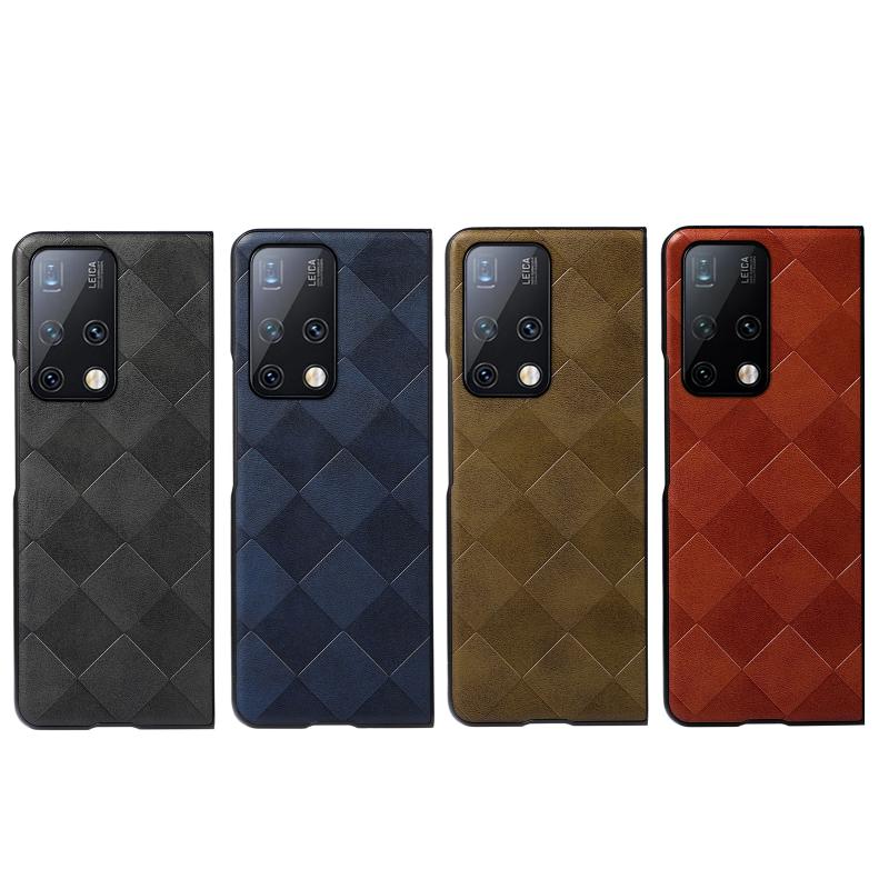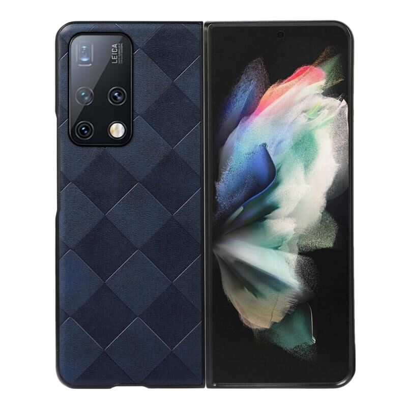 Θήκη τηλεφώνου Huawei Mate X2 με ύφανση καρό από PU δέρμα (Μπλε)