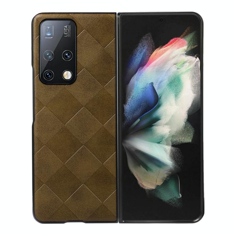 Θήκη τηλεφώνου Huawei Mate X2 με ύφανση καρό από PU δέρμα (πράσινο)