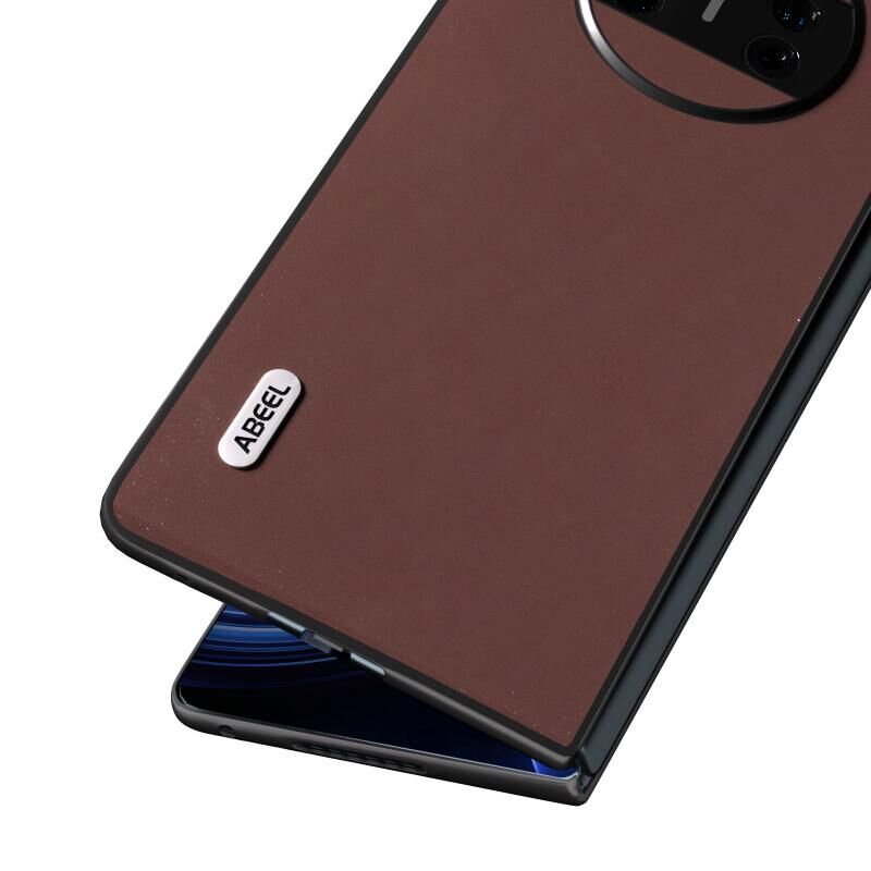 Θήκη τηλεφώνου από γνήσιο δέρμα ABEEL για Huawei Mate X3, βελούδινη, απαλή, μαύρη άκρη (Καφέ)