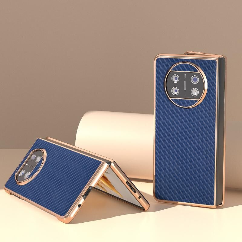 Για Huawei Mate X3 Ηλεκτρολυτική Υφή ανθρακονημάτων Υφή Προστατευτική θήκη τηλεφώνου (σκούρο μπλε)