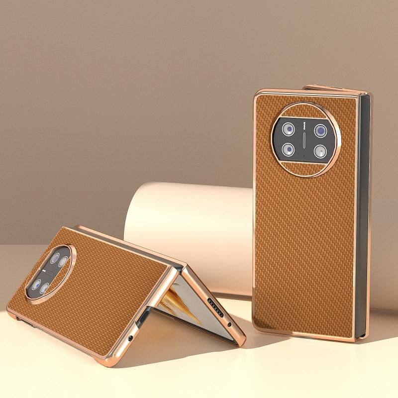 Για Huawei Mate X3 Ηλεκτρολυτική Υφή ανθρακονημάτων Υφή Προστατευτική θήκη τηλεφώνου (Ανοιχτό καφέ)