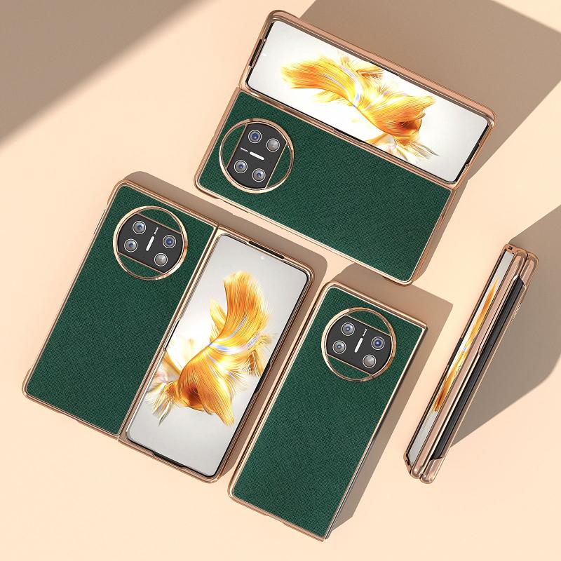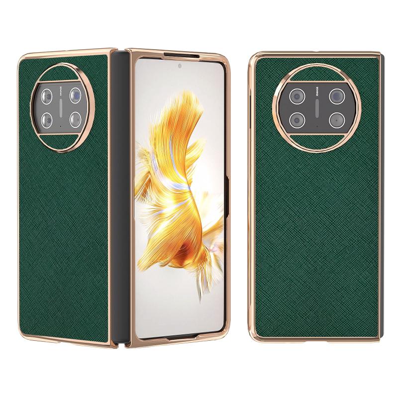 Θήκη τηλεφώνου από γνήσιο δέρμα με σταυρωτή υφή και ηλεκτρολυτική επίστρωση για Huawei Mate X3 (Μπλε)