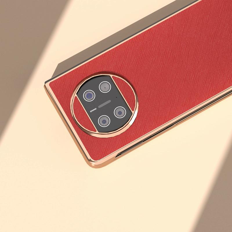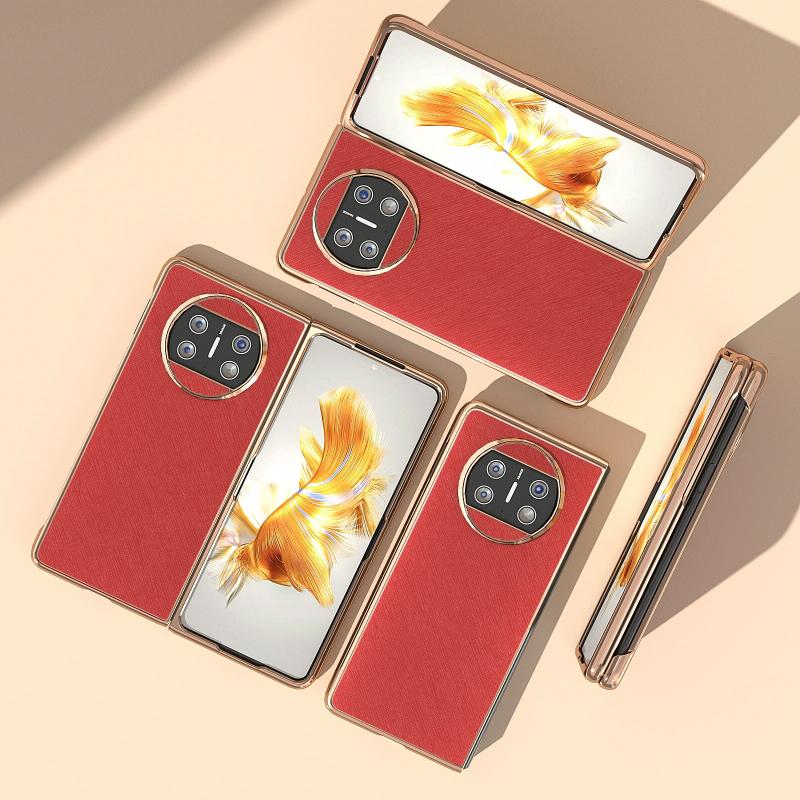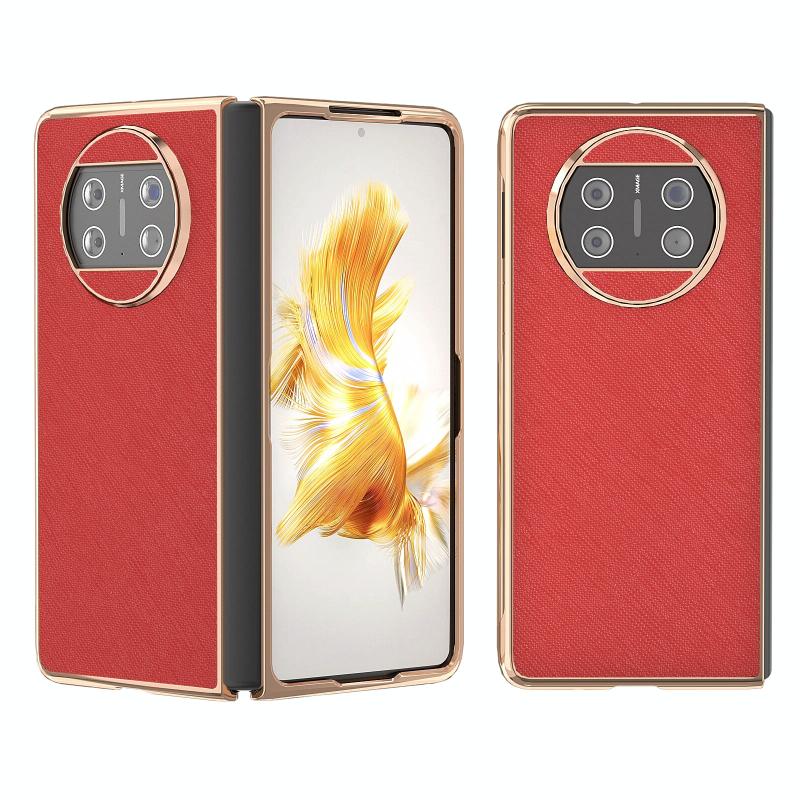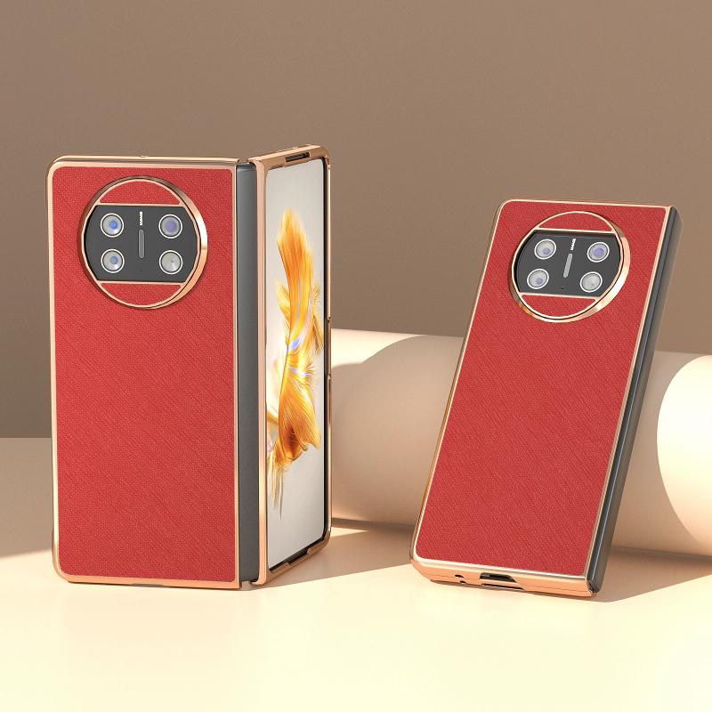 Θήκη τηλεφώνου από γνήσιο δέρμα με σταυρωτή υφή και ηλεκτρολυτική επίστρωση για Huawei Mate X3 (Μπλε)
