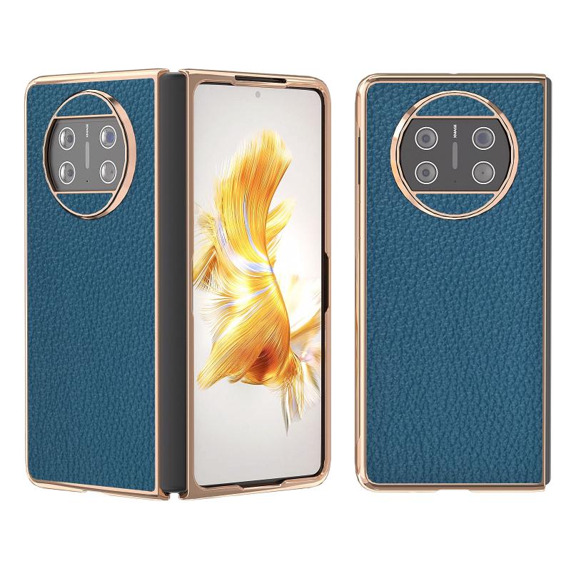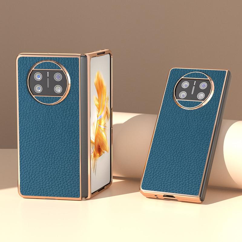 Θήκη τηλεφώνου Huawei Mate X3 με γνήσιο δέρμα, ηλεκτρολυτική επικάλυψη, υφή λυτσί (Γκρι)