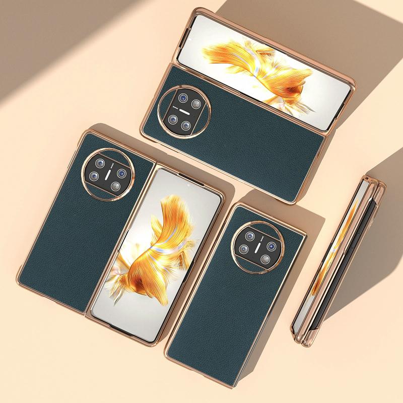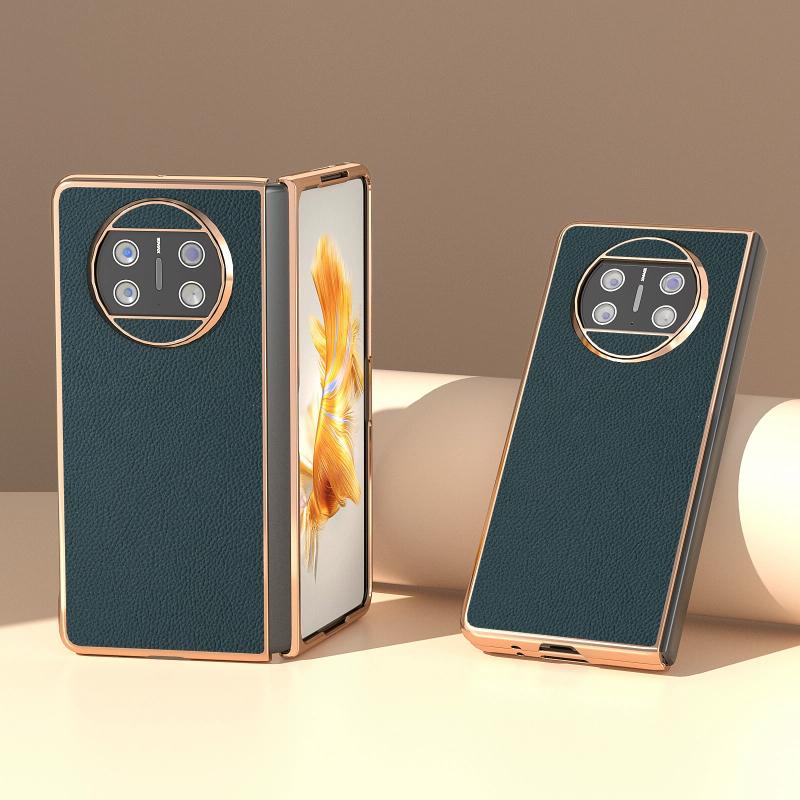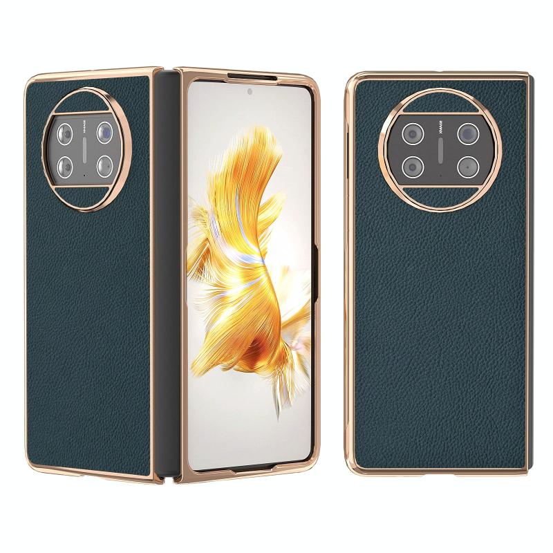 Θήκη τηλεφώνου Huawei Mate X3 με γνήσιο δέρμα και ηλεκτρολυτική επίστρωση + PC με υφή λυτσί (Μπλε)