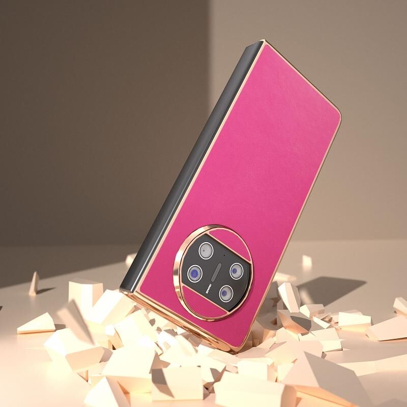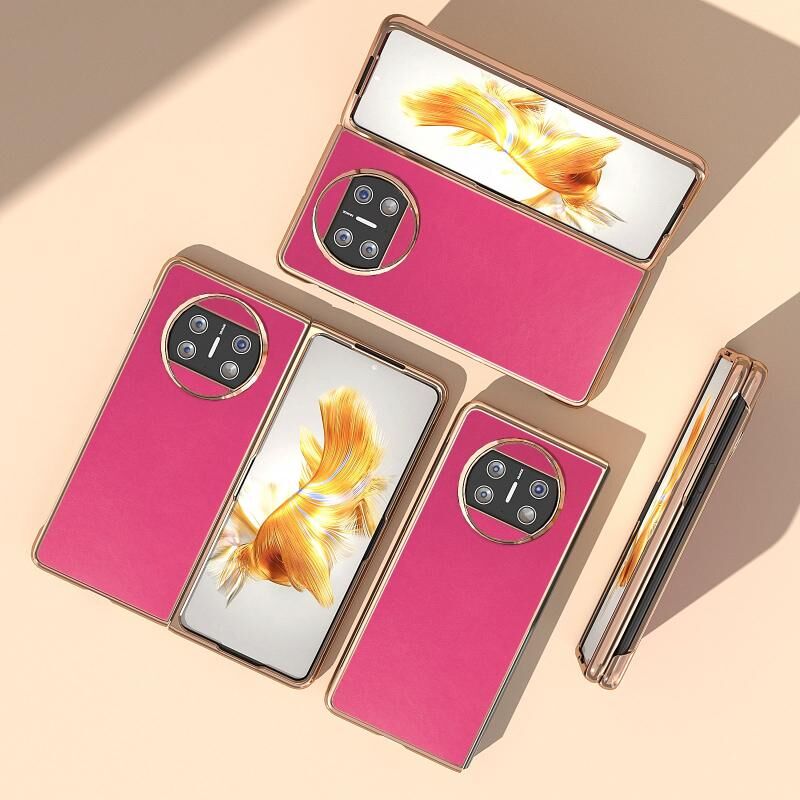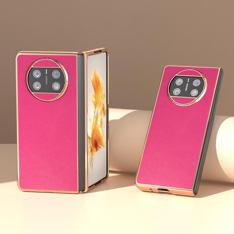 Για Huawei Mate X3 Ηλεκτρολυτική θήκη τηλεφώνου PU υφής Haze (Ροζέ κόκκινο)