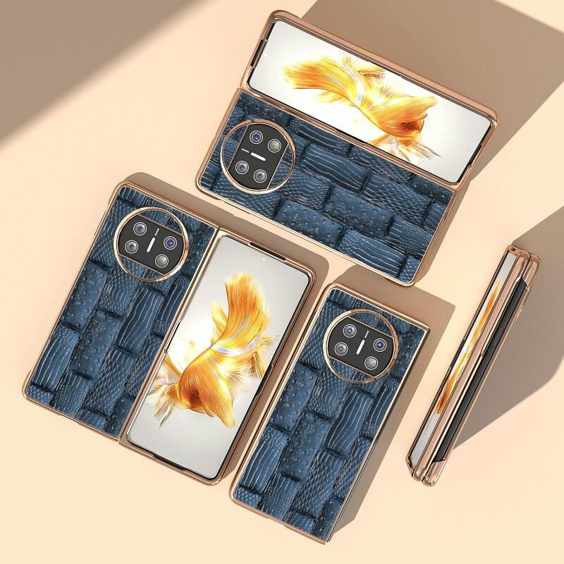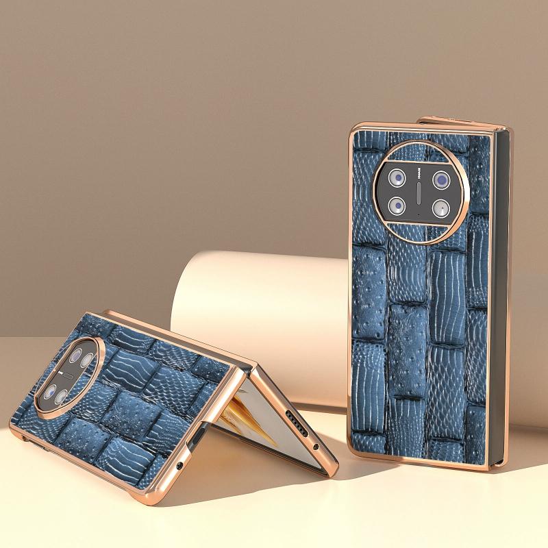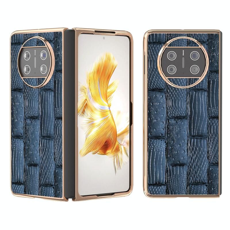 For Huawei Mate X3 Nano Plating Genuine Leather Mahjong Texture Phone Case(Blue)