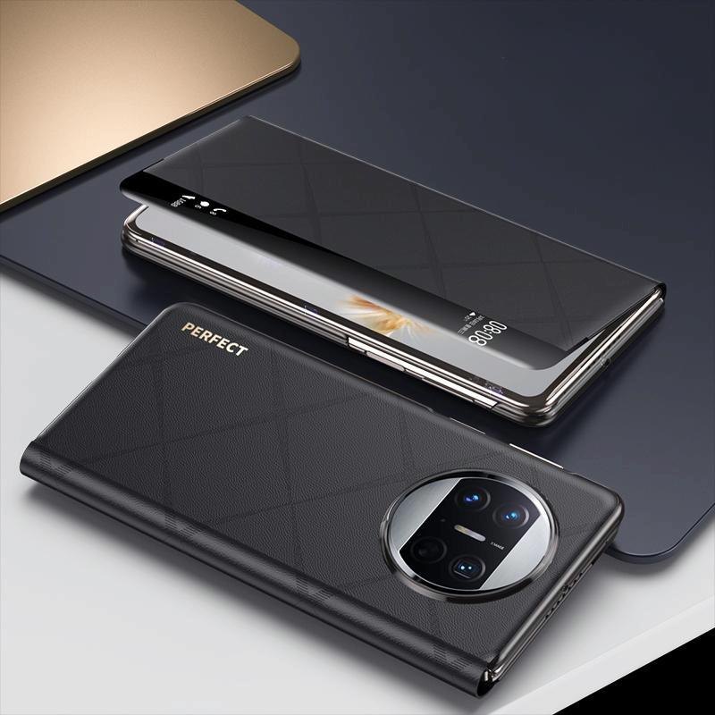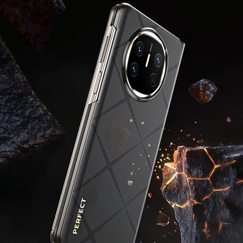 For Huawei Mate X3 Plain Leather Embossed MagSafe Magnetic Phone Leather Case(Black)