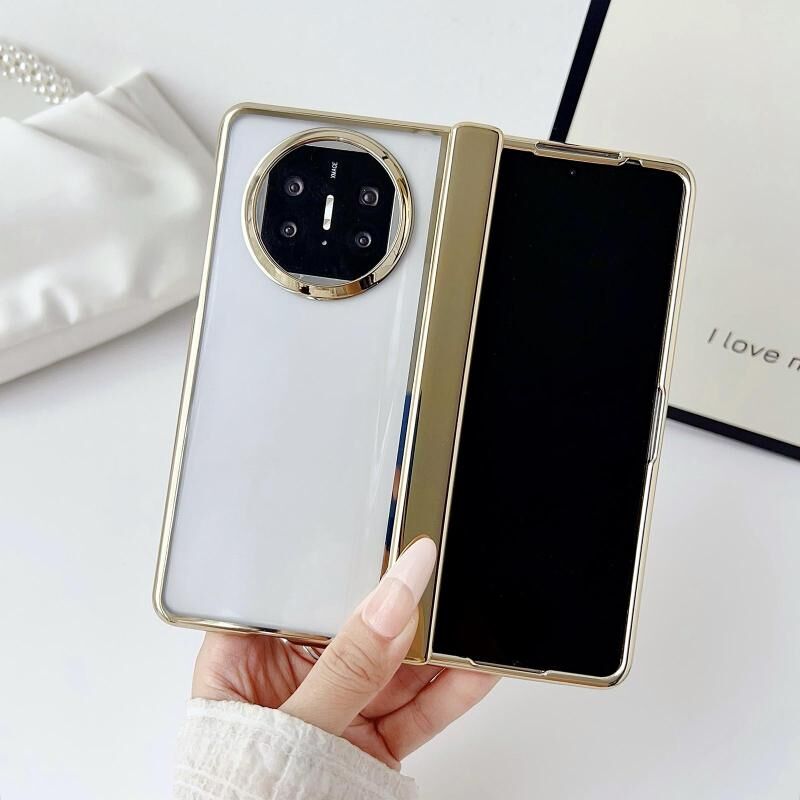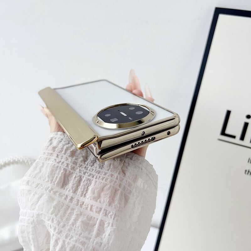 Θήκη τηλεφώνου Huawei Mate X3 με επιμετάλλωση, αίσθηση δέρματος, άξονας ελατηρίου (Χρυσός)