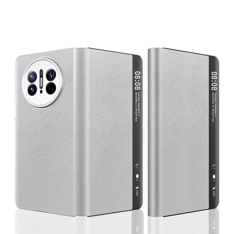 Για Huawei Mate X3 Ρετρό μαγνητική πλευρά Παράθυρο View δερμάτινη θήκη έξυπνου τηλεφώνου (ασημί)