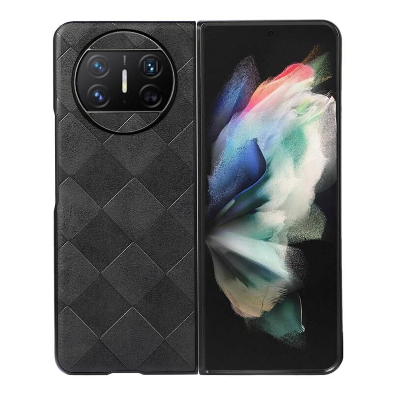Για Huawei Mate X3 Weave καρό PU υπόθεση τηλεφώνου (μαύρο)