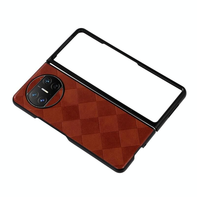 Για Huawei Mate X3 Weave καρό PU υπόθεση τηλεφώνου (καφέ)