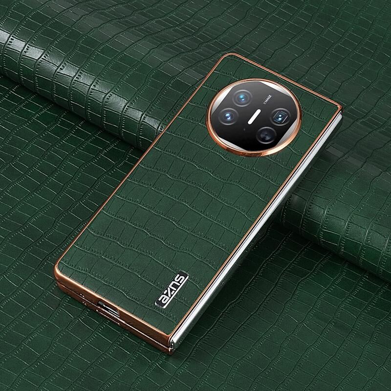 Θήκη κινητού τηλεφώνου πλήρους κάλυψης με ηλεκτρολυτικό πλαίσιο και υφή κροκόδειλου για Huawei Mate X3 / X5 (Καφέ) (AZNS)