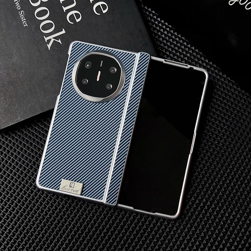 Θήκη κινητού τηλεφώνου αντικραδασμική από ανθρακονήματα Kevlar για Huawei Mate X3 / X5 με ελατήριο και όνομα (Μπλε)