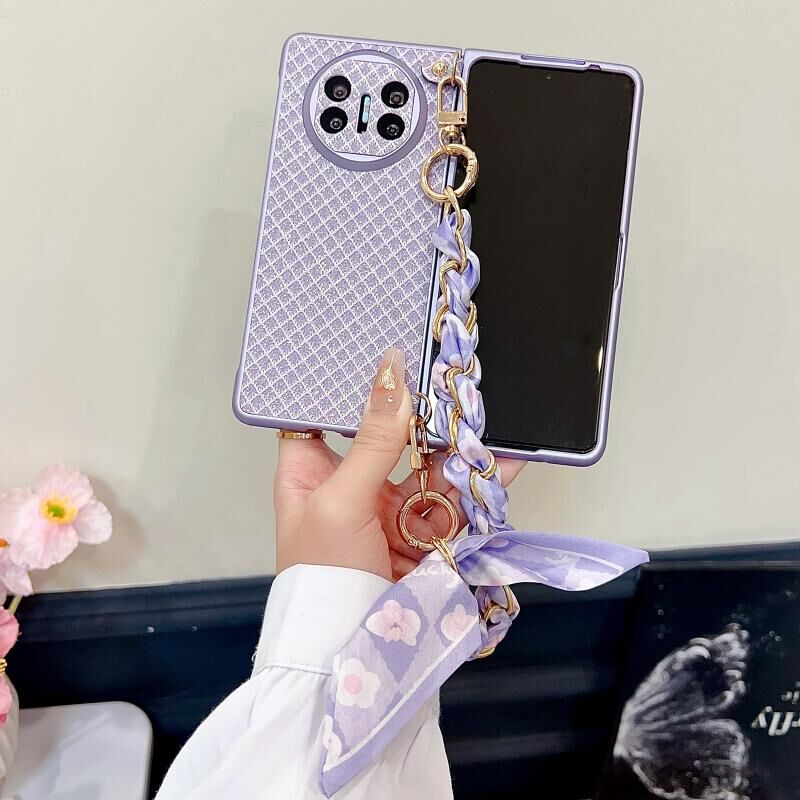 Θήκη κινητού τηλεφώνου Huawei Mate X3 / X5 από πολυανθρακικό (PC) με σχέδιο λαμπερού ρόμβου διαμαντιού και βραχιόλι μεταξωτού μαντηλιού (Μωβ)