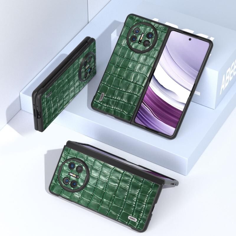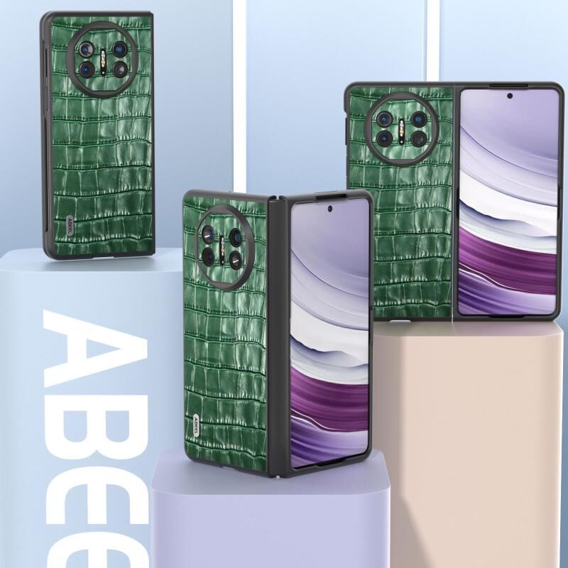 Θήκη τηλεφώνου από γνήσιο δέρμα κροκόδειλου με υφή για Huawei Mate X5 ABEEL (Καφέ)