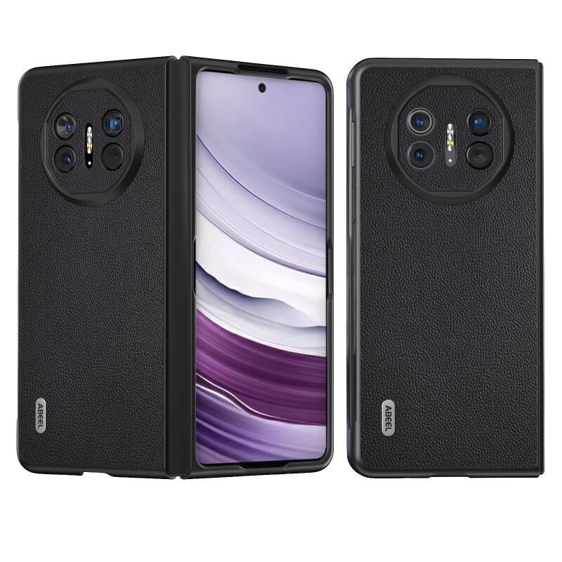 Θήκη τηλεφώνου από γνήσιο δέρμα ABEEL για Huawei Mate X5, κομψή μαύρη άκρη (Λευκό)