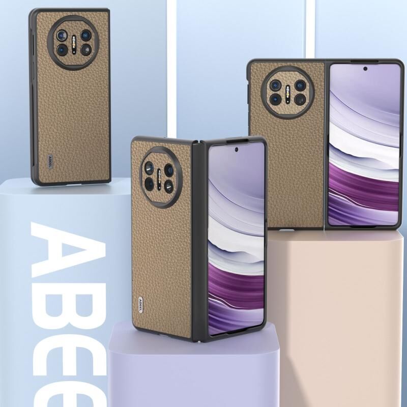 Θήκη τηλεφώνου από γνήσιο δέρμα Huawei Mate X5 ABEEL με υφή λυτσί (Μαύρο)