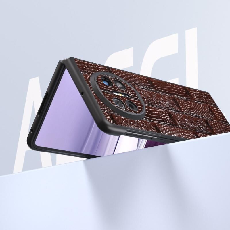 Θήκη τηλεφώνου Huawei Mate X5 ABEEL από γνήσιο δέρμα με μοτίβο Mahjong και μαύρο περίγραμμα (Καφέ)