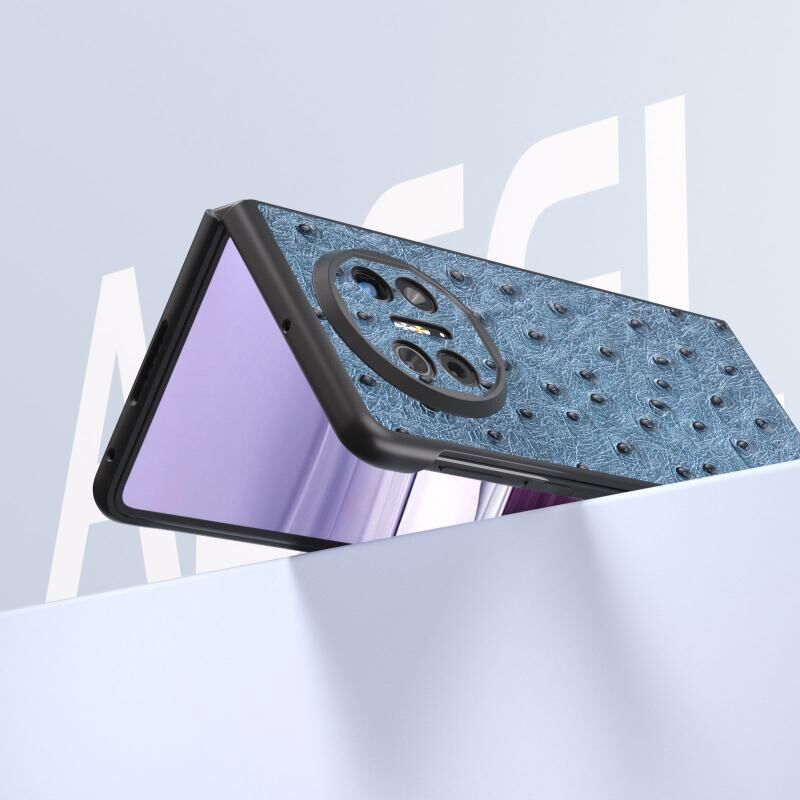 Θήκη τηλεφώνου από γνήσιο δέρμα στρουθοκάμπου για Huawei Mate X5 ABEEL (Πράσινο)
