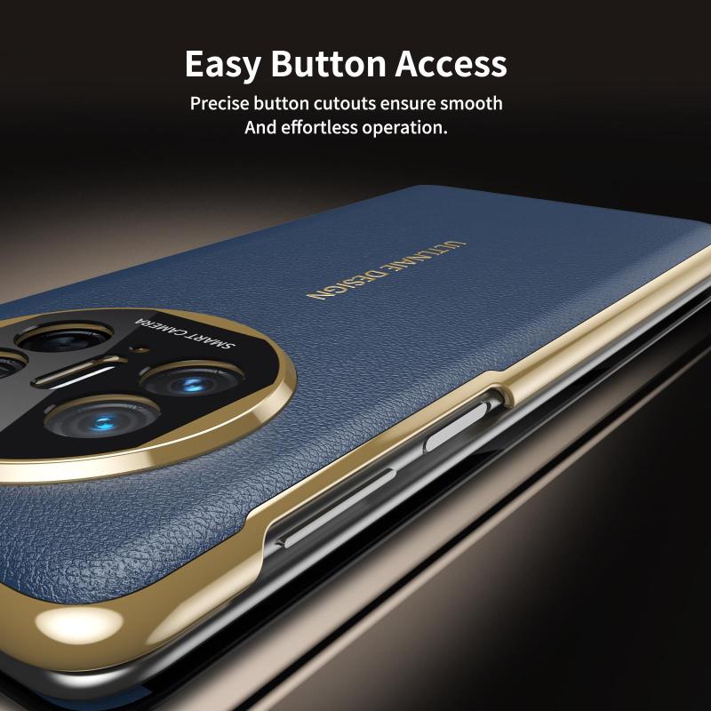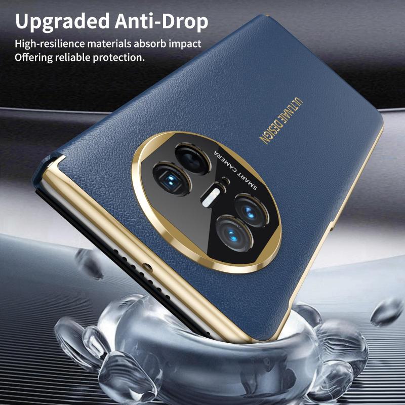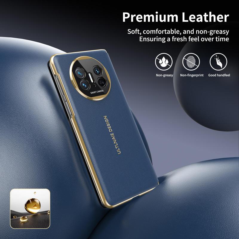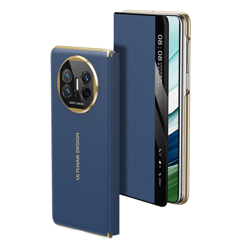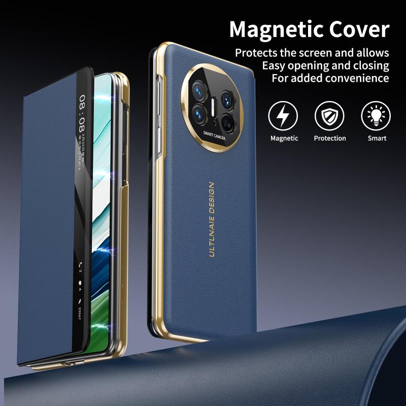 For Huawei Mate X5 Gold Flip Fold Smart Window MagSafe Leather Phone Case(Royal Blue)