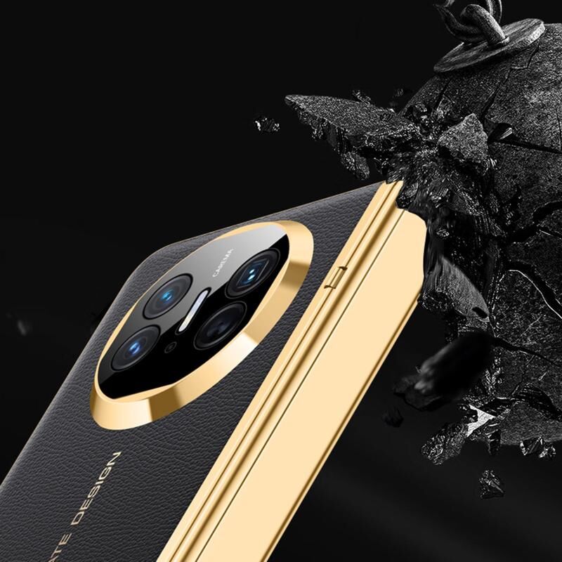 Θήκη τηλεφώνου Huawei Mate X5 HD με ενσωματωμένη ηλεκτρολυτική δερμάτινη υφή και αρθρωτό μηχανισμό (Μαύρο)