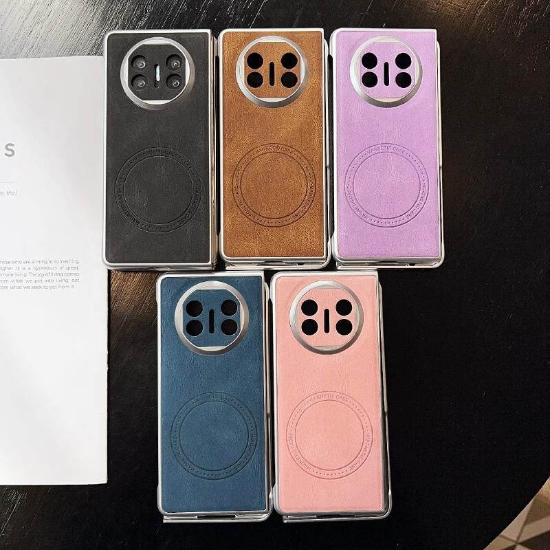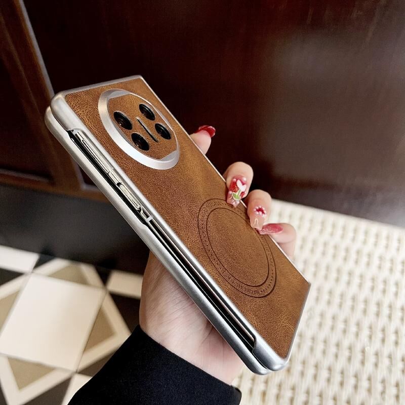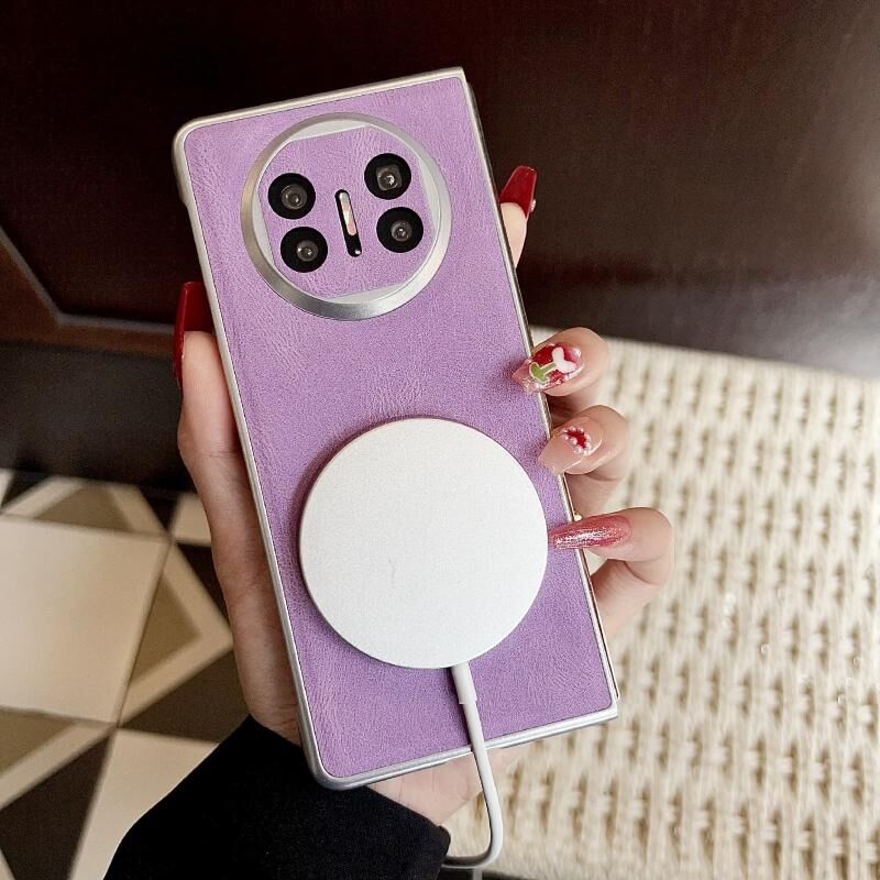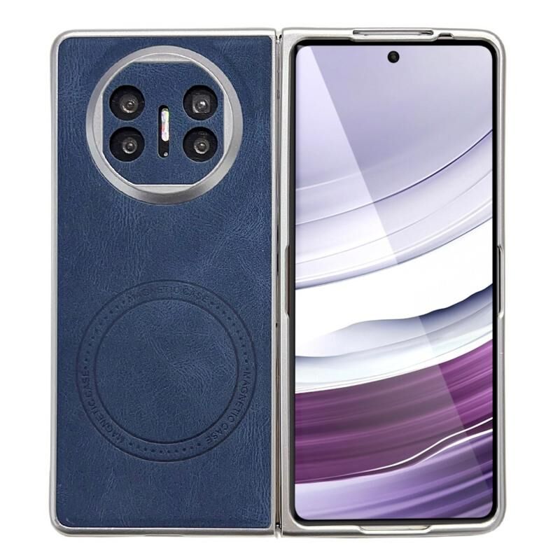 Θήκη κινητού τηλεφώνου Huawei Mate X5 με υφή δέρματος, αίσθηση σαν δέρμα, με MagSafe, ιριδίζουσα βαφή, αντικραδασμική (Μπλε)