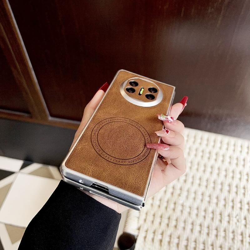 Θήκη κινητού τηλεφώνου Huawei Mate X5 με υφή δέρματος, αίσθηση σαν δέρμα, με MagSafe, ιριδίζουσα βαφή, αντικραδασμική (Μωβ)