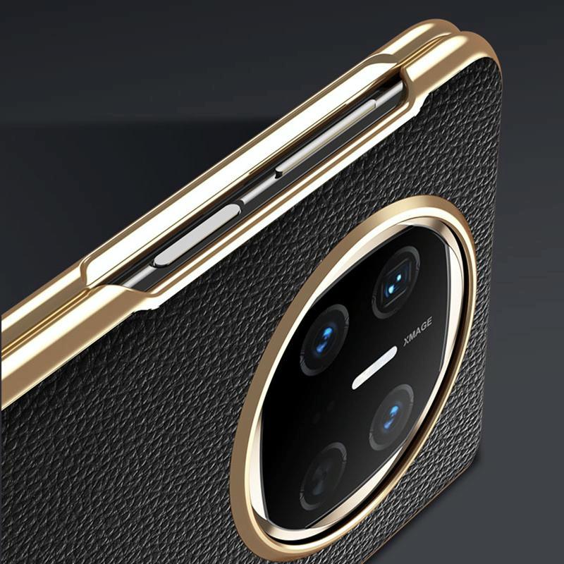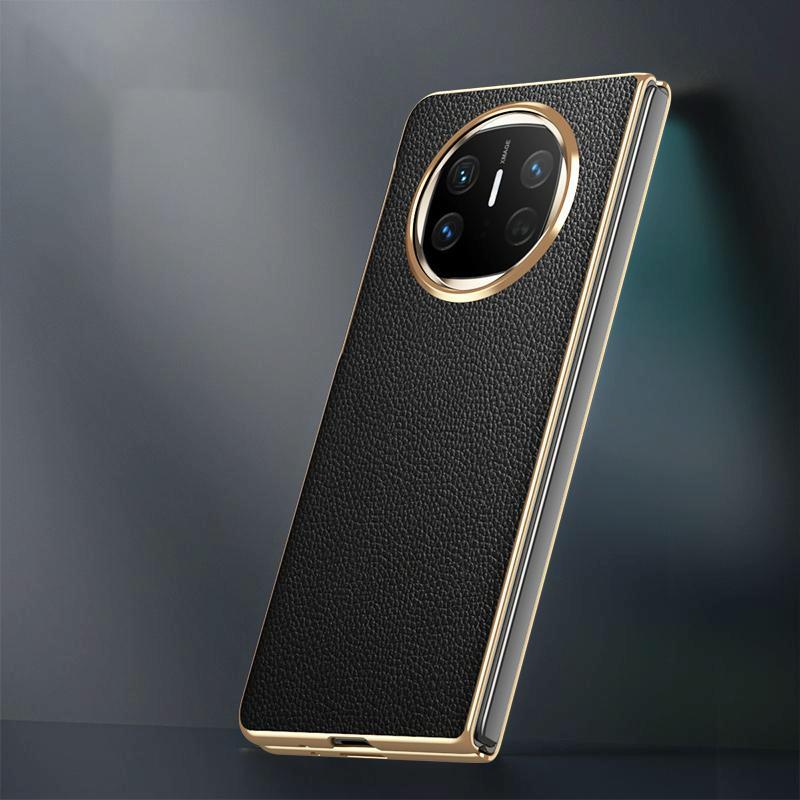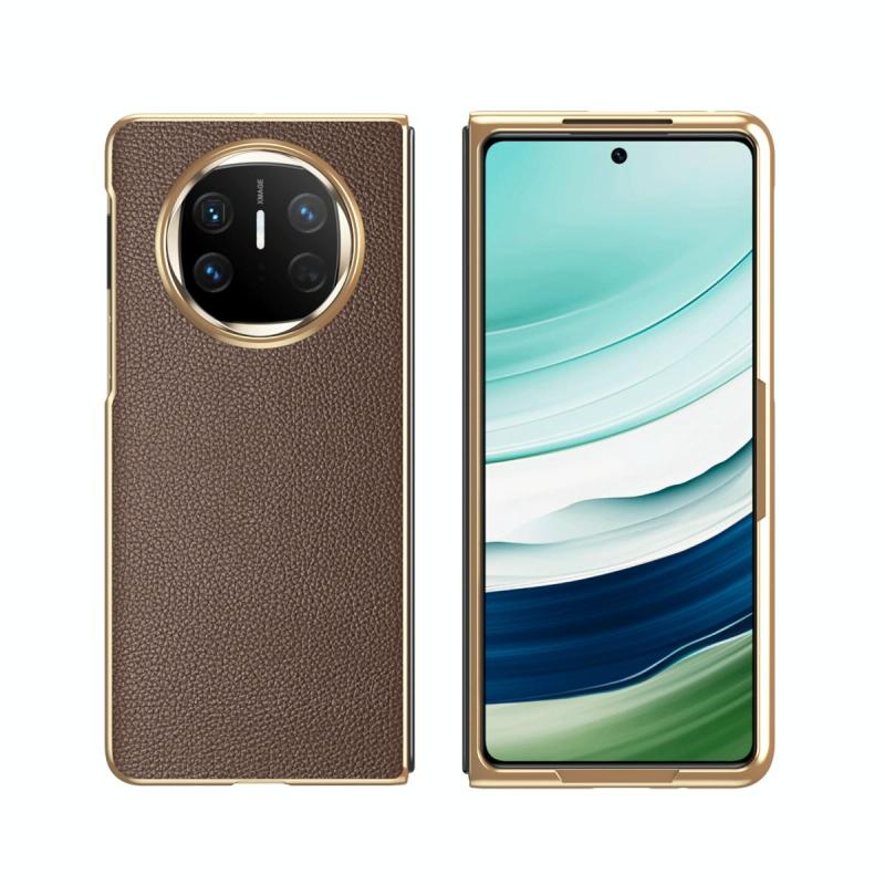 Θήκη δερμάτινη για Huawei Mate X6 με ηλεκτρολυτική υφή λυτσί και προστασία φακού κάμερας από γυαλί (Καφέ)