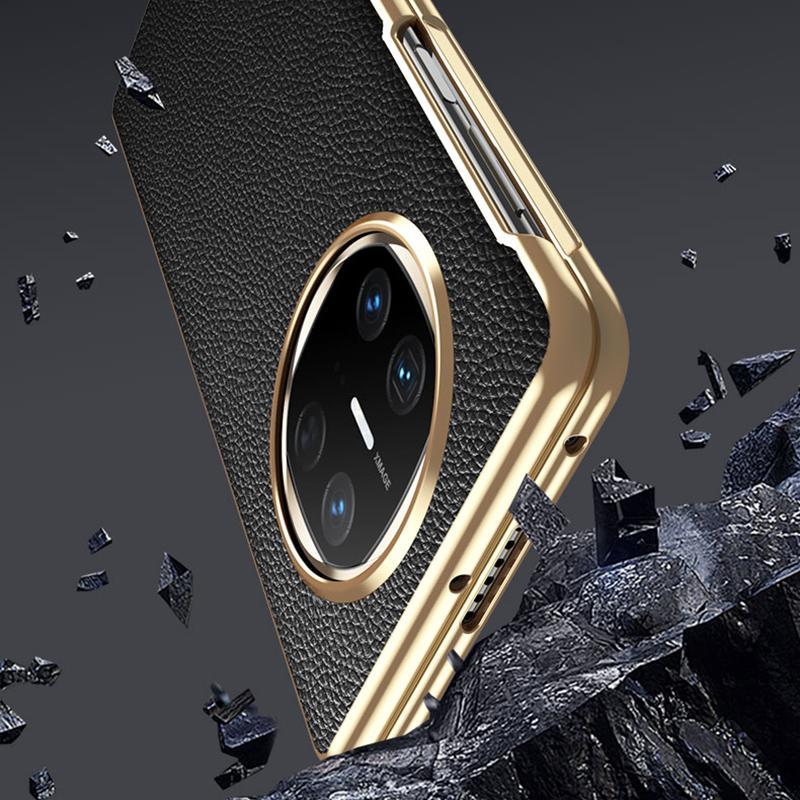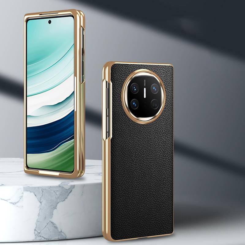Θήκη δερμάτινη για Huawei Mate X6 με ηλεκτρολυτική υφή λυτσί και προστασία φακού κάμερας από γυαλί (Μπλε)