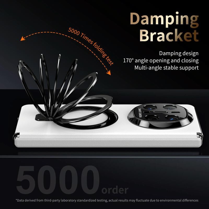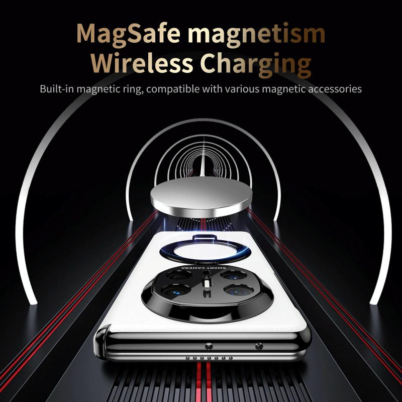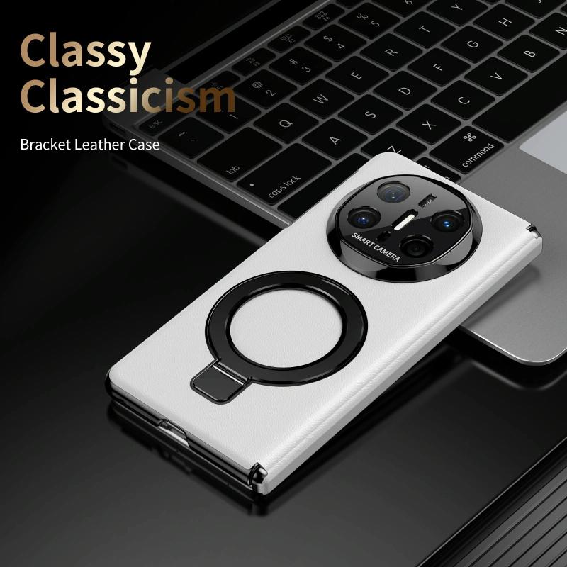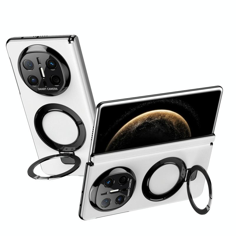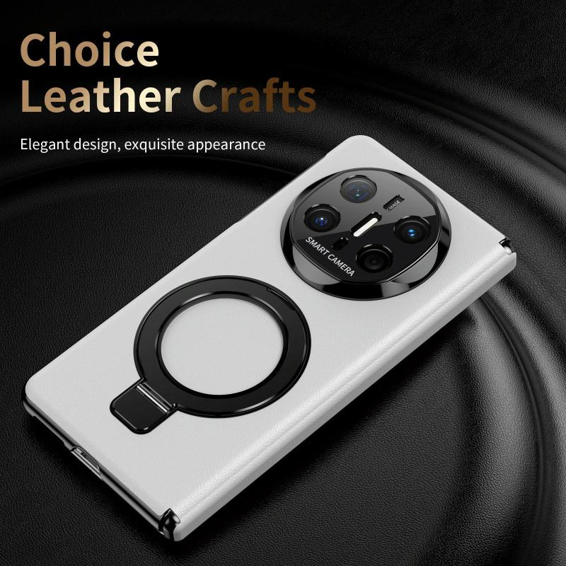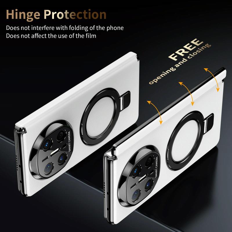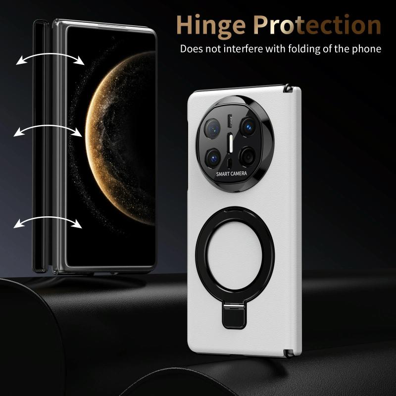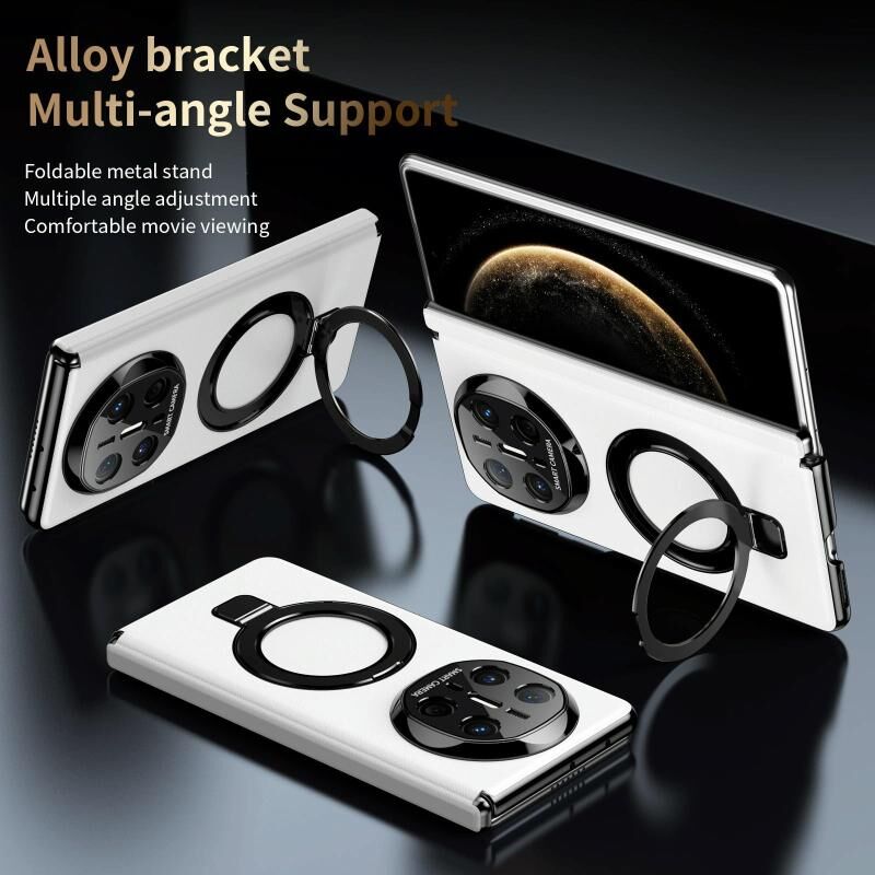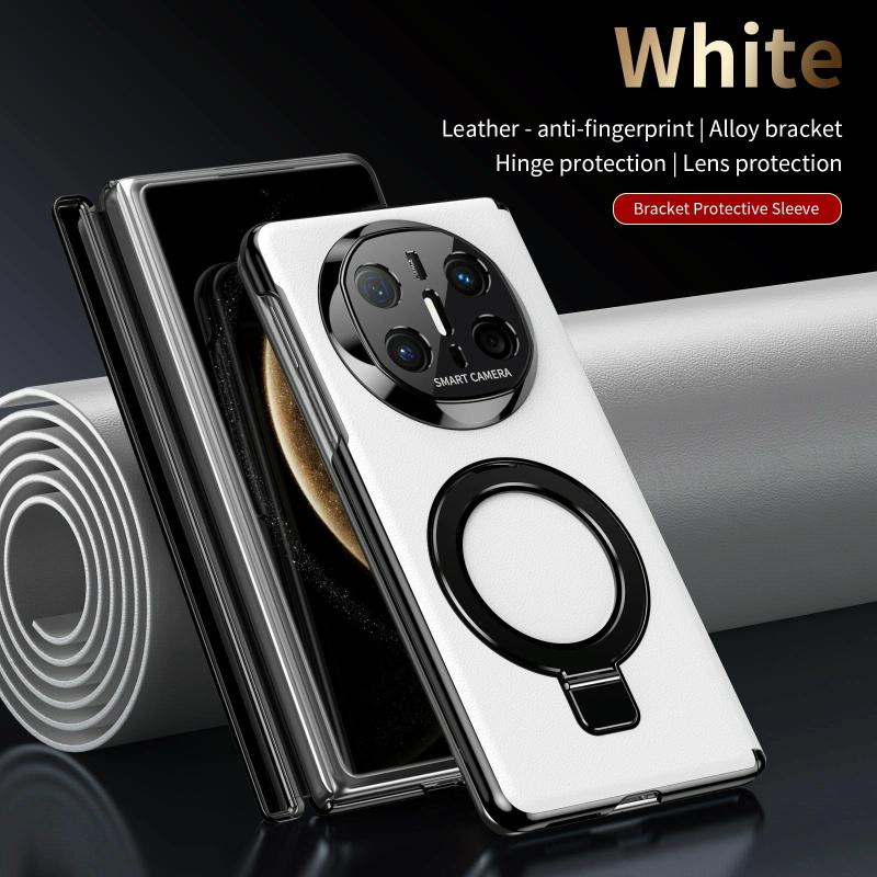 Θήκη κινητού Huawei Mate X6 μεταλλικός αναδιπλούμενος στήριξης με μεντεσέ, MagSafe, δερμάτινη αντικραδασμική (Λευκό)