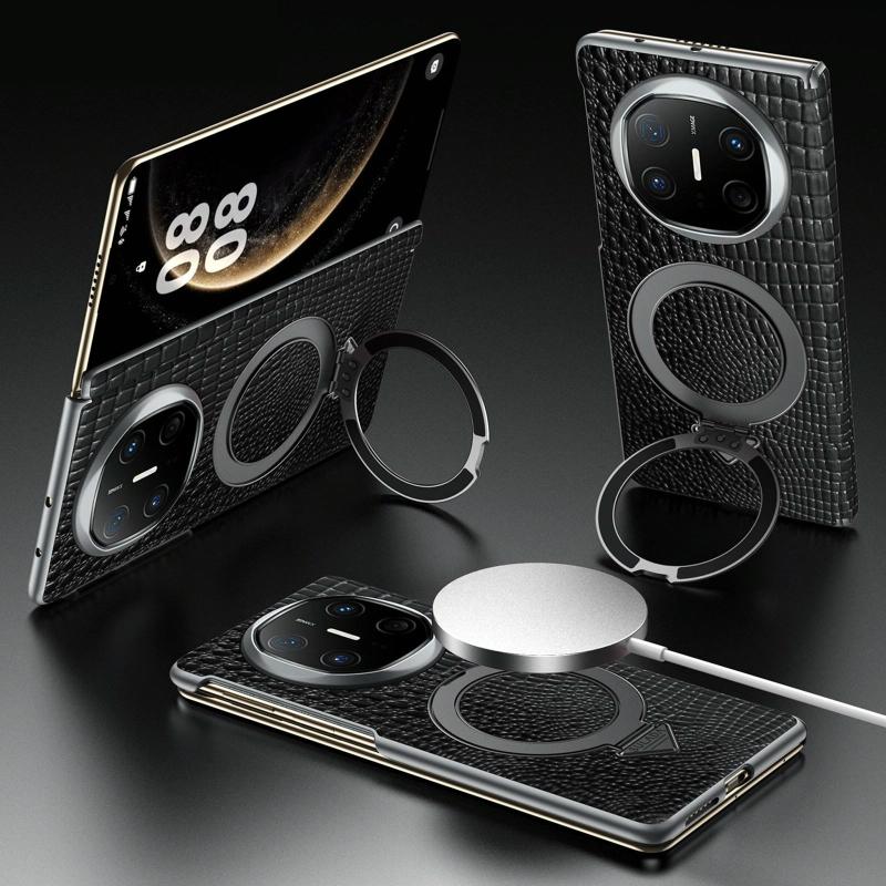 For Huawei Mate X6 SULADA Crocodile Texture Genuine Leather MagSafe Holder Phone Case(Black) (SULADA)