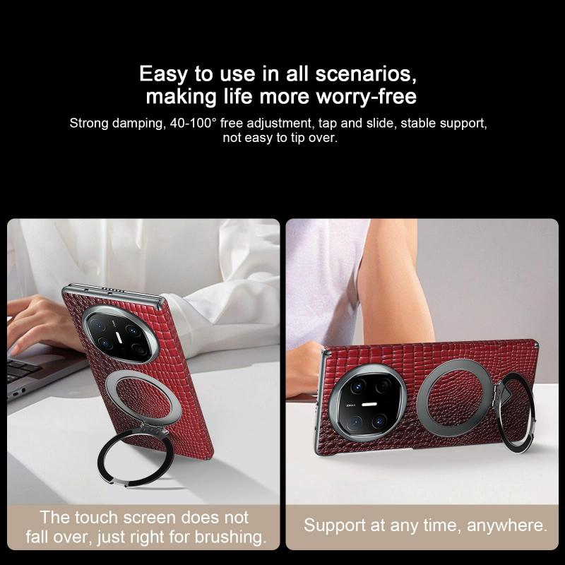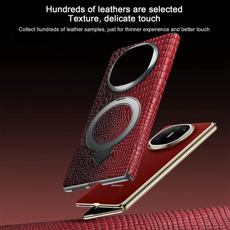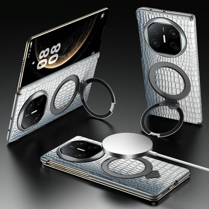 For Huawei Mate X6 SULADA Crocodile Texture Genuine Leather MagSafe Holder Phone Case(White) (SULADA)
