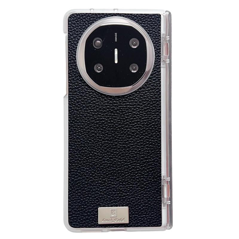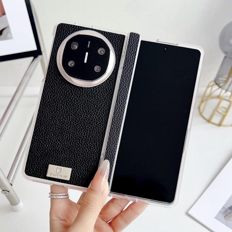 For Huawei Mate X6 Transparent Edge Spring Axis Litchi Texture Phone Case(Black)