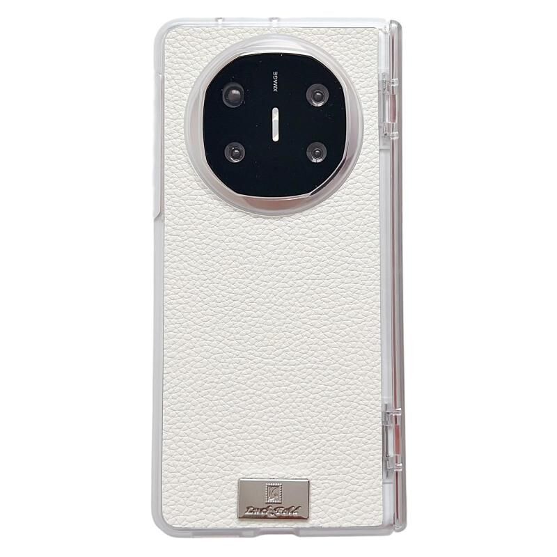 For Huawei Mate X6 Transparent Edge Spring Axis Litchi Texture Phone Case(White)