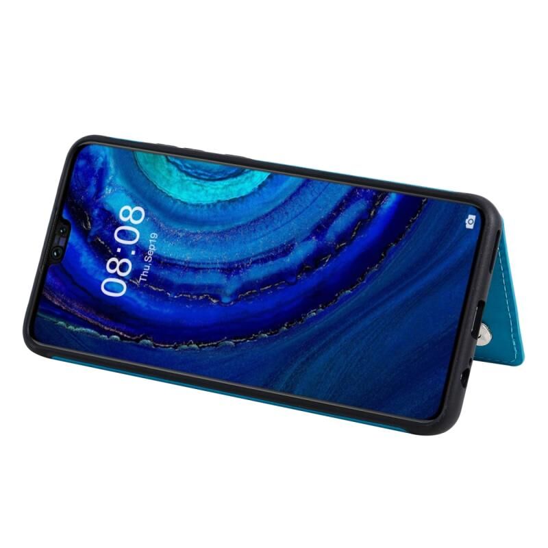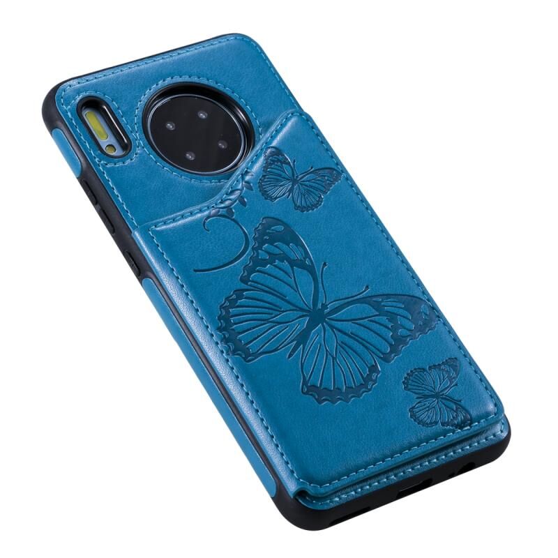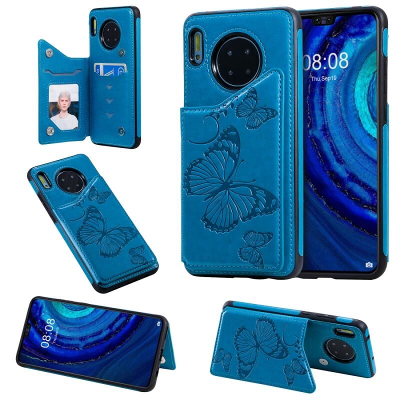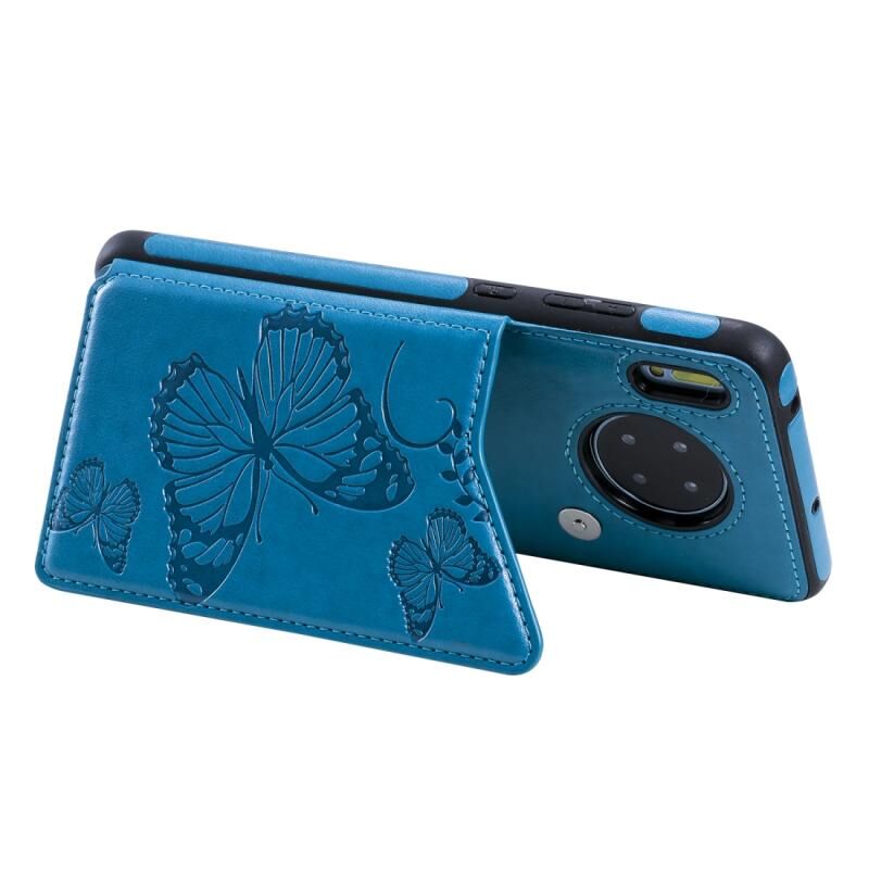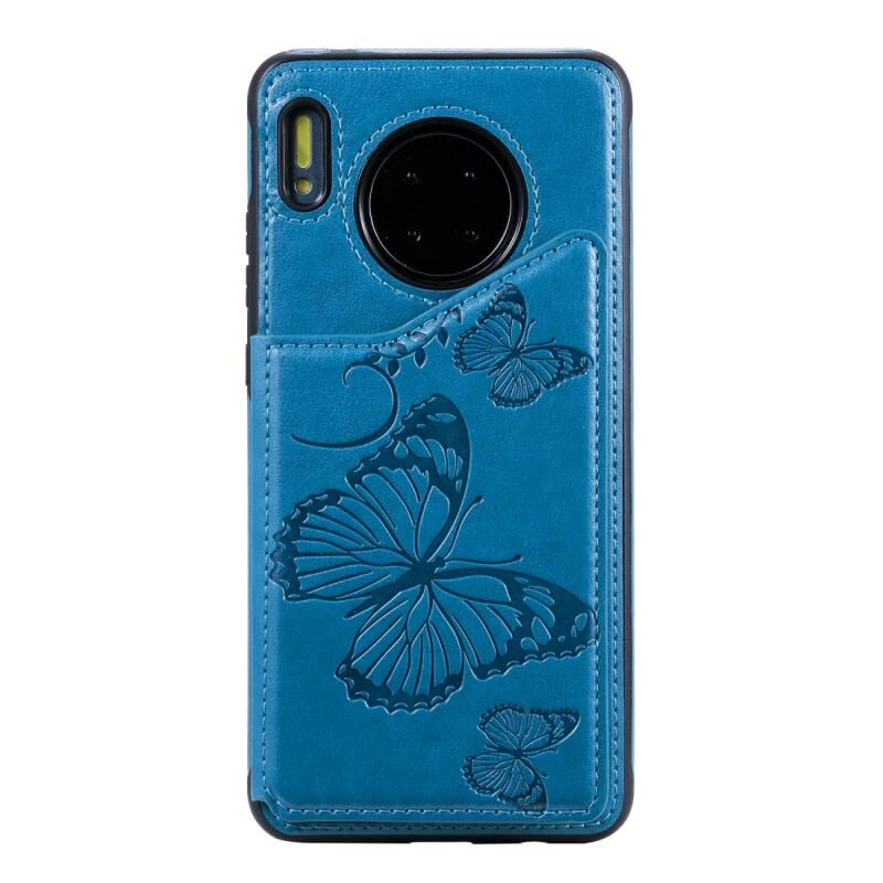 For Huawei Mate30 Butterfly Embossing Pattern Shockproof Protective Case with Holder & Card Slots & Photo Frame(Blue)