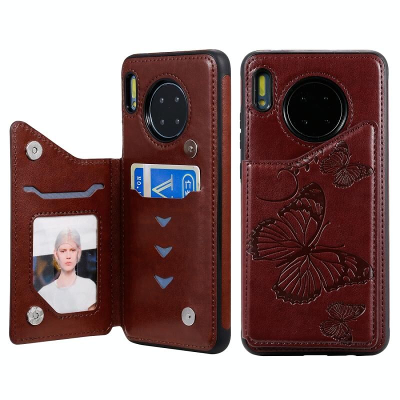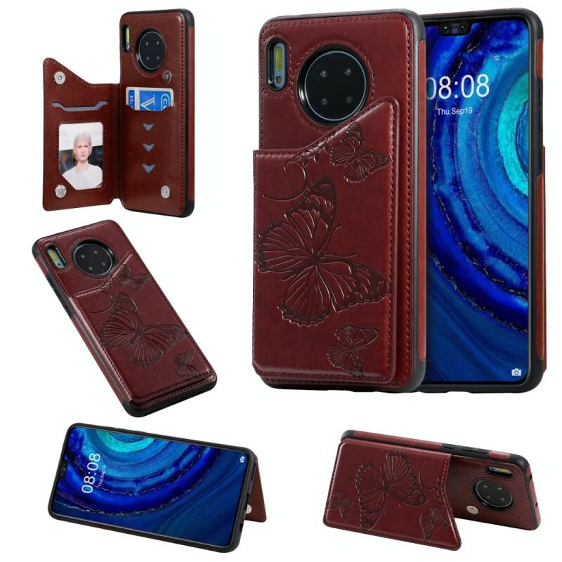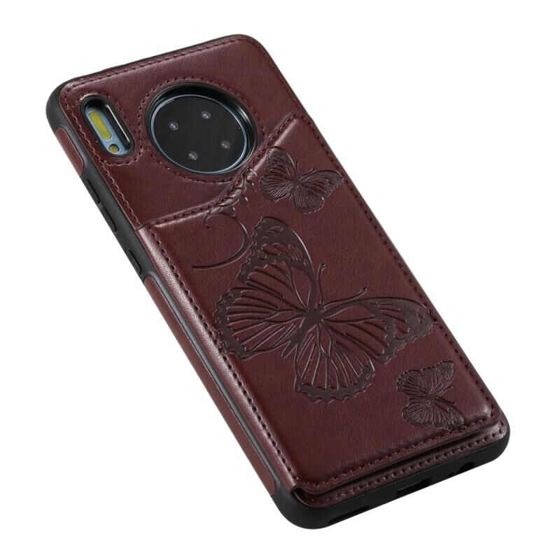 For Huawei Mate30 Butterfly Embossing Pattern Shockproof Protective Case with Holder & Card Slots & Photo Frame(Brown)