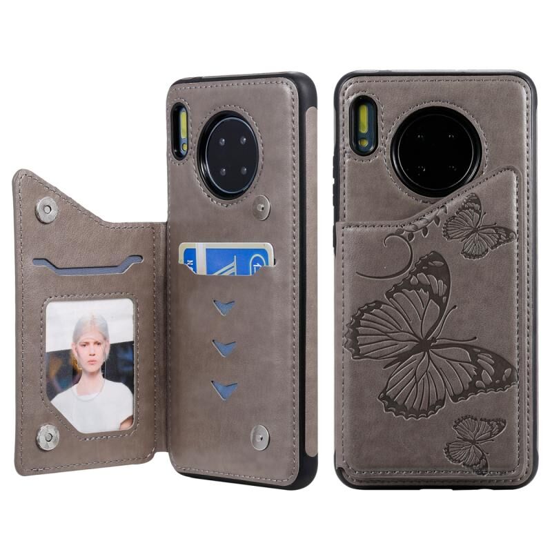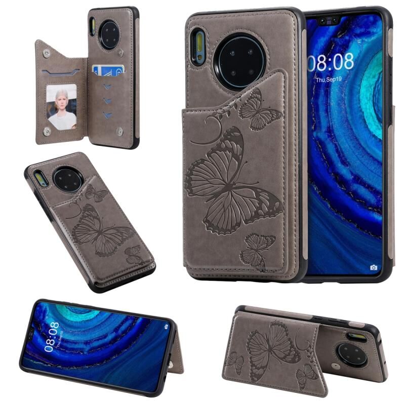 For Huawei Mate30 Butterfly Embossing Pattern Shockproof Protective Case with Holder & Card Slots & Photo Frame(Gray)